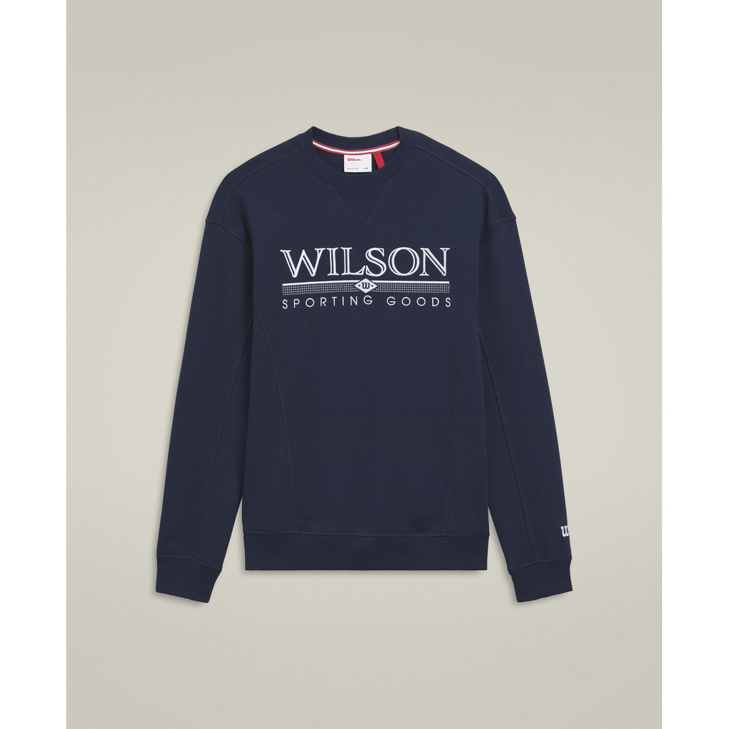 Warm up in sporty style with the Wilson Men's Parkside Crew Sweatshirt. This lightweight, French terry pullover has a ribbed crewneck with inner taping, flat seaming details, a ribbed hem and sleeve cuffs, anti-odor technology, moisture wicking comfort, a large appliqud Wilson logo across the chest and an embroidered 'W' on the left sleeve.